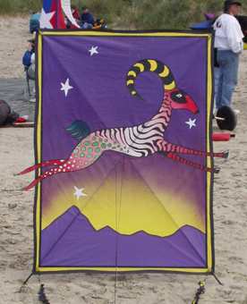 a painted fabric and sewn appliquéd della Porta kite named “Zegalope”,